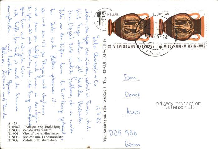 old postcard Tinos Hafen postalisch gelaufen Erhaltung siehe scans