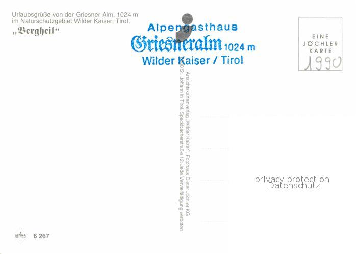 72898941 Tirol Region Alpengasthaus Griesner Alm mit Wildem Kaiser postalisch nicht gelaufen Erhaltung siehe scans [FriedD77] KatCode: 11390332070101
