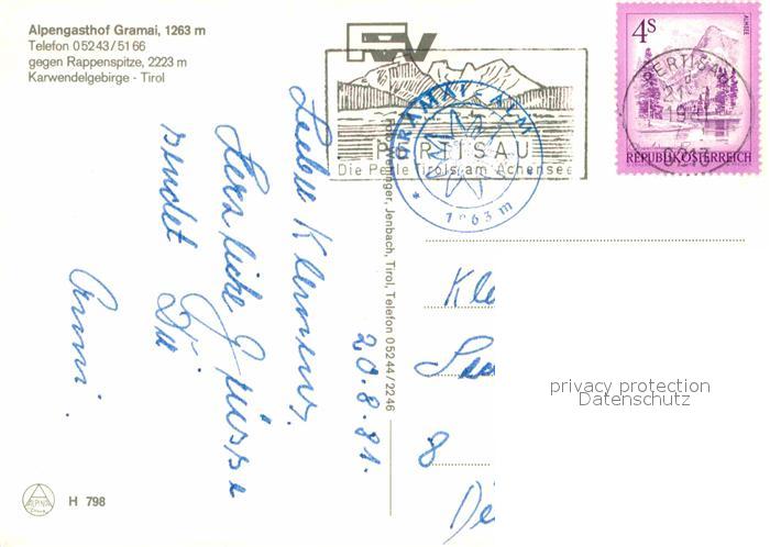 72849248 alte Postkarte Tirol Region Alpengasthof Gramai Rappenspitze Karwendelgebirge postalisch gelaufen Erhaltung siehe scans [KathaD81] KatCode: 11390332070101