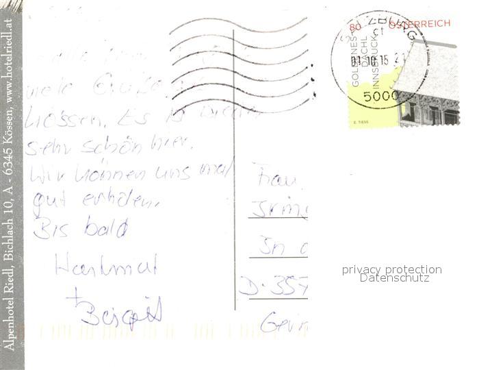 73151892 alte Postkarte Tirol Region Alpenhotel Riedl Kaiserwinkl postalisch gelaufen Erhaltung siehe scans [KathaD81] KatCode: 11390332070101