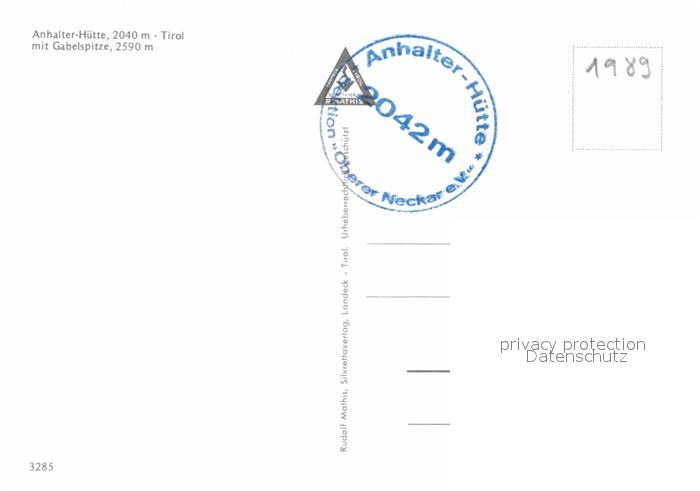 72898096 Tirol Region Anhalter Huette mit Gabelspitze postalisch nicht gelaufen Erhaltung siehe scans [FriedD77] KatCode: 11390332070101