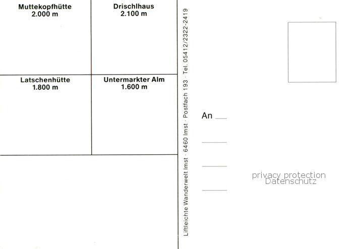 73834788 Tirol Region AT Muttekopf Latschenhuette Drischlhaus Untermarkter Alm postalisch nicht gelaufen Erhaltung siehe scans [WerneD78] KatCode: 11390332070101