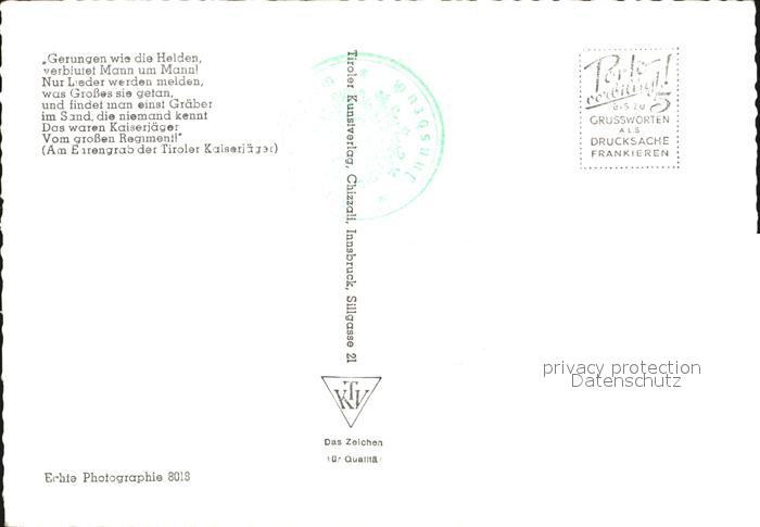 72444272 Tirol Region Berg Isel postalisch nicht gelaufen Erhaltung siehe scans KatCode: 11390332070101