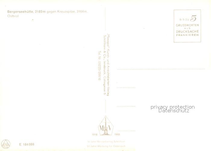73049435 Tirol Region Bergerseehuette Kreuzspitze postalisch nicht gelaufen Erhaltung siehe scans [KathaD81] KatCode: 11390332070101