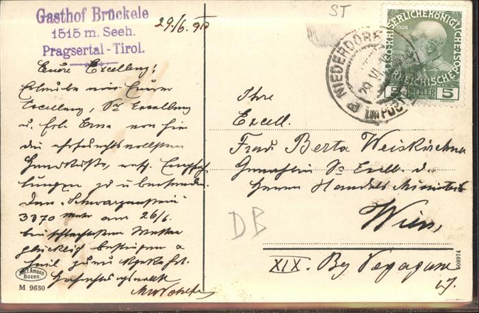 11097200 Tirol Region Gasthof Brückele (1515 m) Pragsertal KatCode 11390332070101