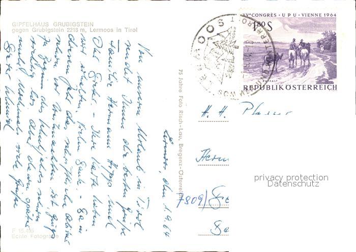 72562451 alte Postkarte Tirol Region Gipfelhaus Grubigstein Lermoos postalisch gelaufen Erhaltung siehe scans [AntonD74] KatCode: 11390332070101