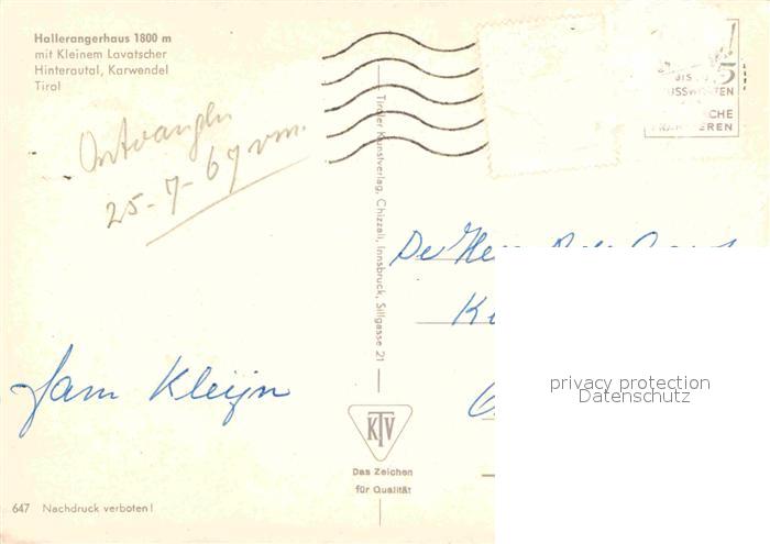 72890540 alte Postkarte Tirol Region Hallerangerhaus mit Kl Lavatscher Hinterautal postalisch gelaufen Erhaltung siehe scans [WerneD78] KatCode: 11390332070101