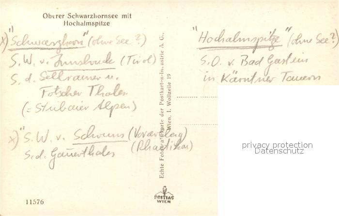 43066078 Tirol Region Hochalmspitze Oberer Schwarzhornsee postalisch nicht gelaufen Erhaltung siehe scans [LiesaD40] KatCode: 11390332070101