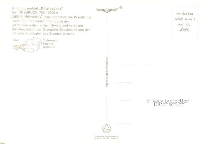 73587178 Tirol Region Mittelgebirge Sonnenterrasse bei Innsbruck mit Zirbenweg Fliegeraufnahme postalisch nicht gelaufen Erhaltung siehe scans [WerneD78] KatCode: 11390332070101