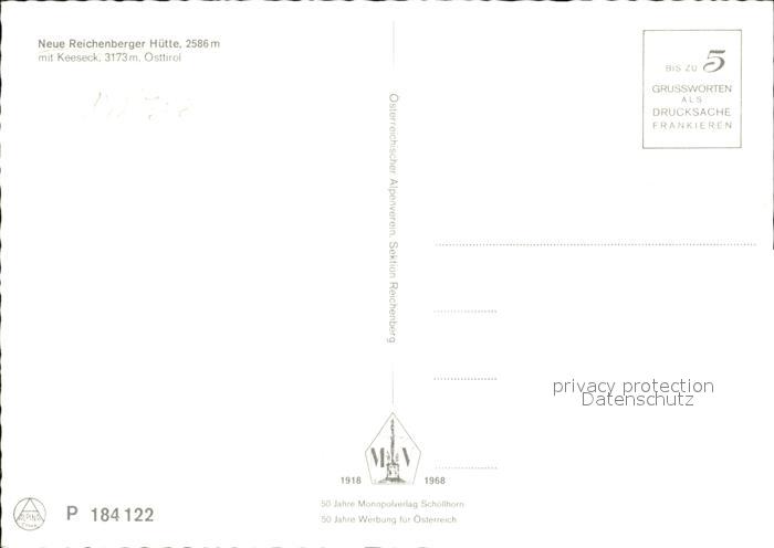 72494526 Tirol Region Neue Reichenberger Huette Keeseck postalisch nicht gelaufen Erhaltung siehe scans KatCode: 11390332070101