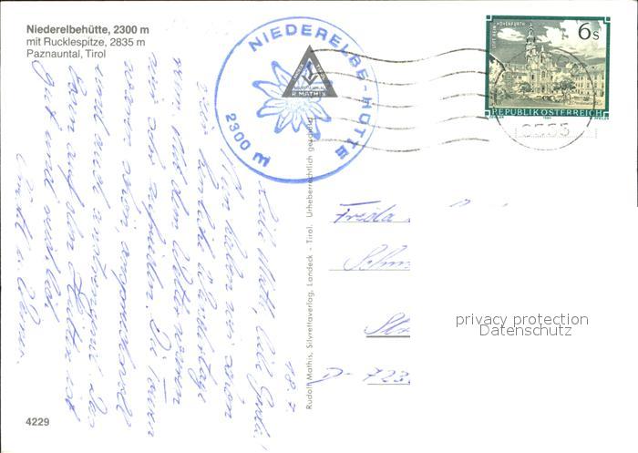 72494536 alte Postkarte Tirol Region Niederelbehuette Rucklespitze Paznauntal postalisch gelaufen Erhaltung siehe scans KatCode: 11390332070101