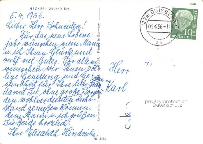 72503656 alte Postkarte Tirol Region Weiler in Tirol Alpen Kuenstlerkarte Hecker postalisch gelaufen Erhaltung siehe scans KatCode: 11390332070101