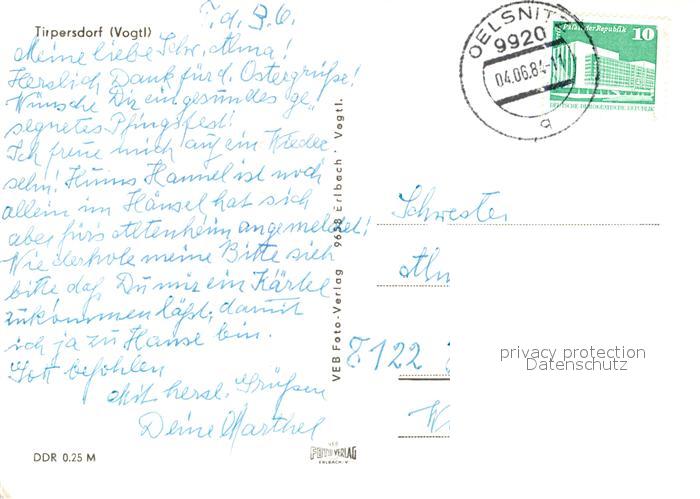 73549366 alte Postkarte Tirpersdorf Panorama Kirche postalisch gelaufen Erhaltung siehe scans [WerneD78] KatCode: 11110014178670