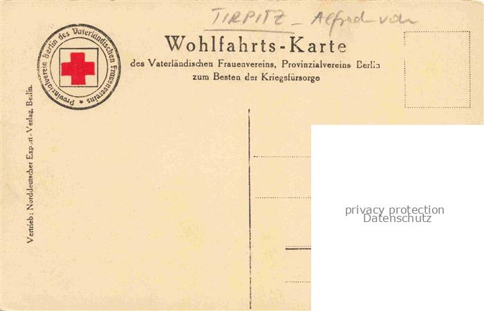 74035736 TIRPITZ Alfred von Admiral Marine Warships Deutschland Rotes Kreuz Berlin postalisch nicht gelaufen Erhaltung siehe scans [SanaeD93] KatCode: 22480000001000