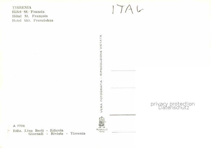 32664902 Tirrenia Hotel St. Francis postalisch nicht gelaufen Erhaltung siehe scans [LiesaD40] KatCode: 11240