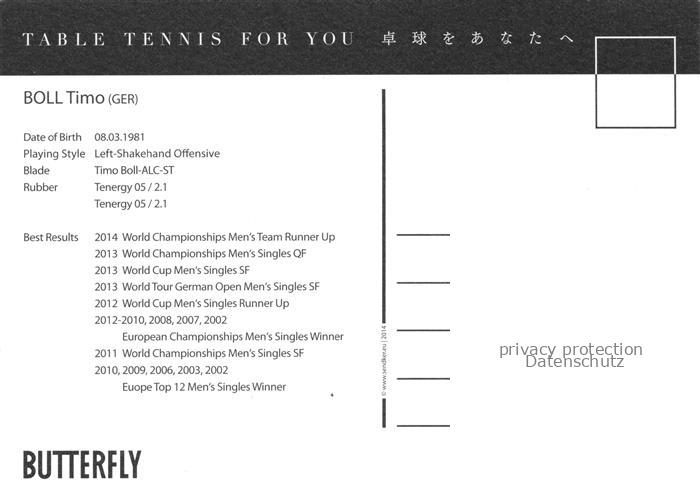 74150583 Tischtennis Table-Tennis Tennis de Table Ping-Pong– Boll Timo postalisch nicht gelaufen Erhaltung siehe scans [IrynaD87] KatCode: 22520000001000