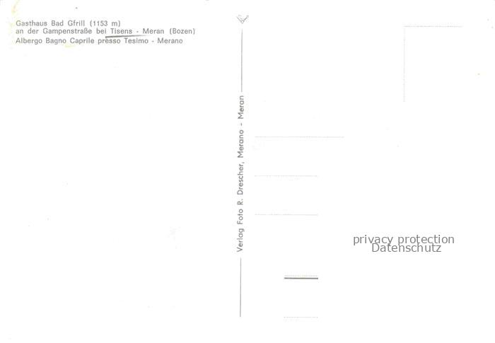 74132315 Tisens Tesimo Kastelruth Castelrotto Merano Suedtirol IT Gasthaus Bad Gfrill an der Gampenstrasse postalisch nicht gelaufen Erhaltung siehe scans [FriedD77] KatCode: 11240