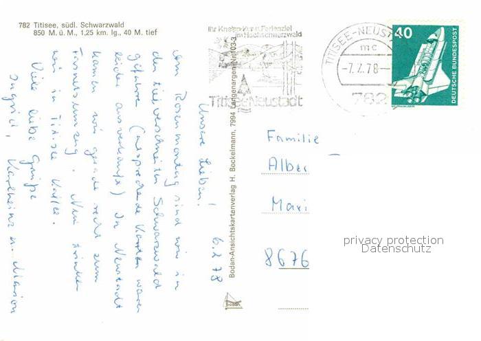 72899988 alte Postkarte Titisee postalisch gelaufen Erhaltung siehe scans [NatalD47] KatCode: 11110008315113