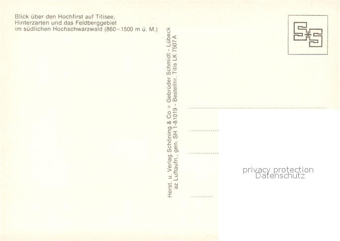 73230404 Titisee Blick ueber den Hochfirst auf Titisee Hinterzarten Feldberggebiet Schwarzwald Fliegeraufnahme postalisch nicht gelaufen Erhaltung siehe scans [FriedD77] KatCode: 11110008315113