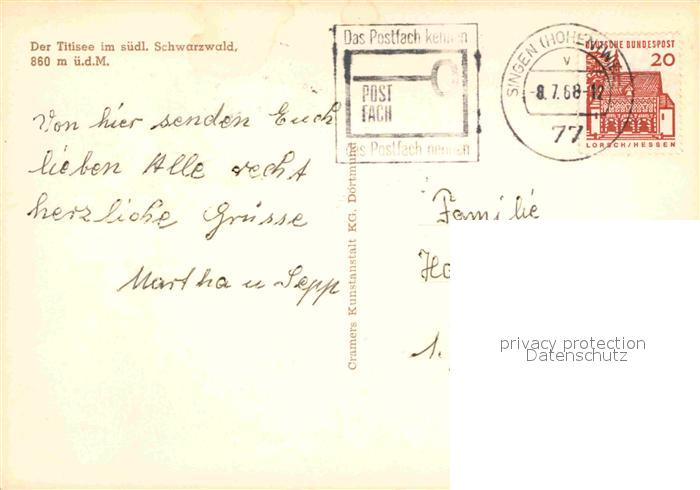 72866677 alte Postkarte Titisee Campingplatz Seehaeusle postalisch gelaufen Erhaltung siehe scans [NatalD47] KatCode: 11110008315113