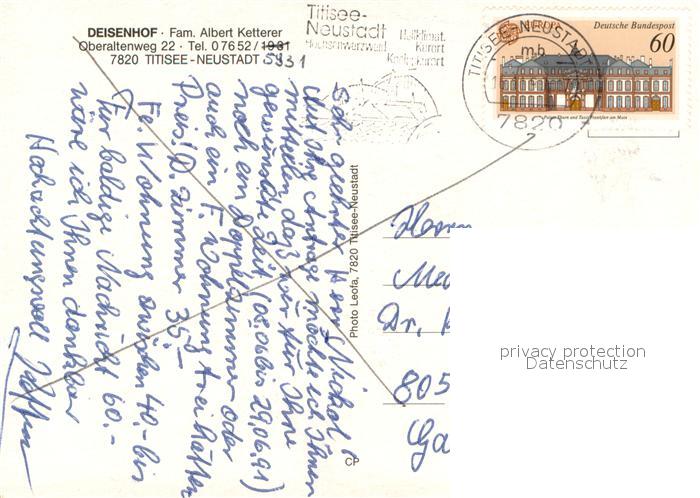 73636782 alte Postkarte Titisee Deisenhof Urlaub auf dem Bauernhof Viehweide Kuehe postalisch gelaufen Erhaltung siehe scans [FriedD77] KatCode: 11110008315113