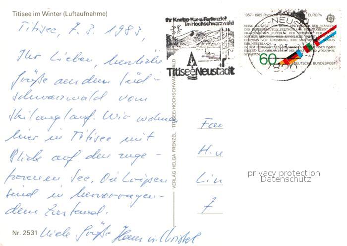 72947425 alte Postkarte Titisee Fliegeraufnahme im Winter postalisch gelaufen Erhaltung siehe scans [WerneD78] KatCode: 11110008315113