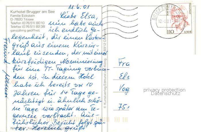 73073793 alte Postkarte Titisee Kurhotel Brugger am See postalisch gelaufen Erhaltung siehe scans [FriedD77] KatCode: 11110008315113