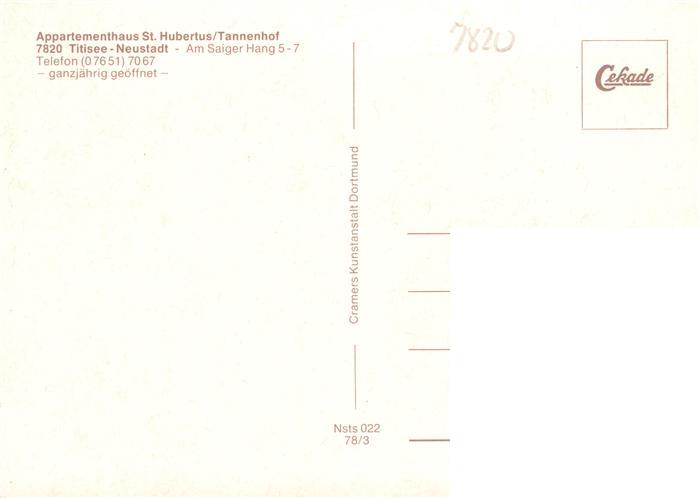 73928904 Titisee-Neustadt Appartementhaus St Hubertus Tannenhof Hallenbad Panorama postalisch nicht gelaufen Erhaltung siehe scans [WerneD78] KatCode: 11110008315113