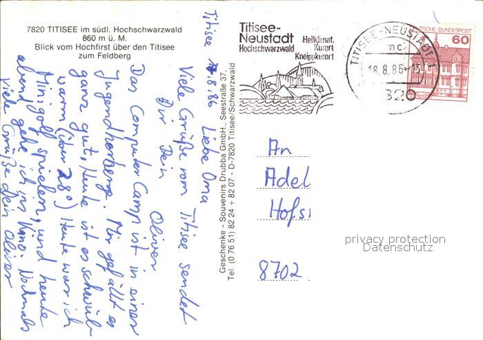 72291264 alte Postkarte Titisee-Neustadt Blcik vom Hochfirst ueber See zum Feldberg postalisch gelaufen Erhaltung siehe scans KatCode: 11110008315113