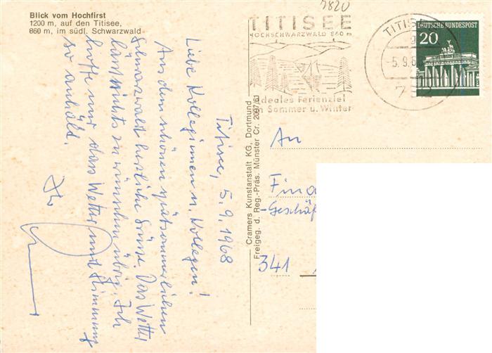 73929454 alte Postkarte Titisee-Neustadt Blick vom Hochfirst Fliegeraufnahme postalisch gelaufen Erhaltung siehe scans [WerneD78] KatCode: 11110008315113