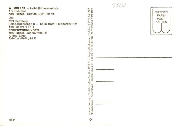73928786 Titisee-Neustadt Feldberger und Titiseer Holzschnitzerei Panorama postalisch nicht gelaufen Erhaltung siehe scans [WerneD78] KatCode: 11110008315113