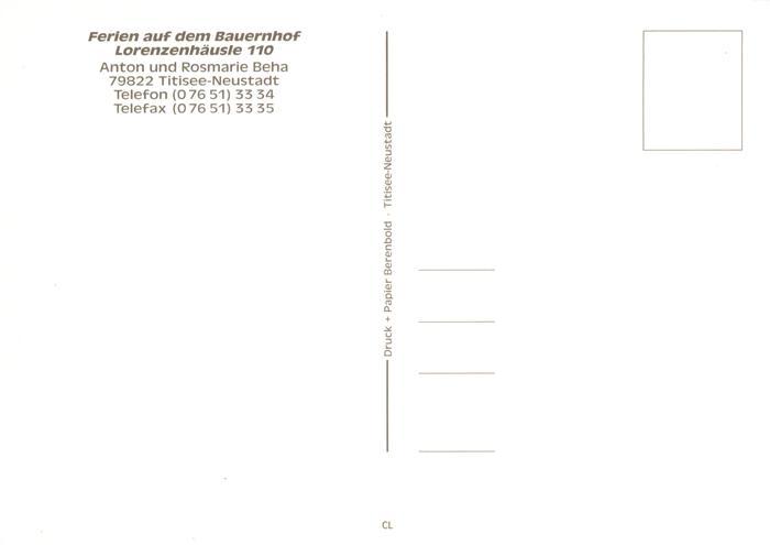 73880593 Titisee-Neustadt Ferien auf dem Bauernhof Lorenzhaeusle postalisch nicht gelaufen Erhaltung siehe scans [WerneD78] KatCode: 11110008315113