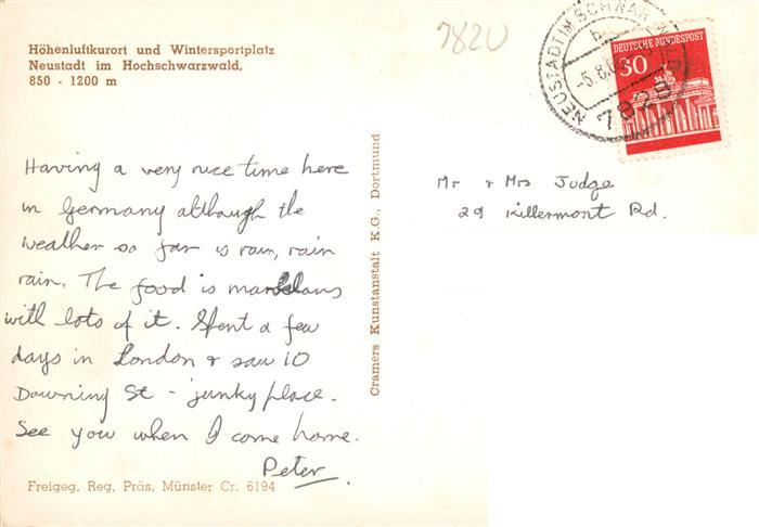 73928894 alte Postkarte Titisee-Neustadt Fliegeraufnahme postalisch gelaufen Erhaltung siehe scans [WerneD78] KatCode: 11110008315113