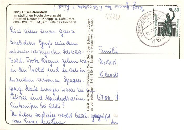 73928836 alte Postkarte Titisee-Neustadt Fliegeraufnahme postalisch gelaufen Erhaltung siehe scans [WerneD78] KatCode: 11110008315113