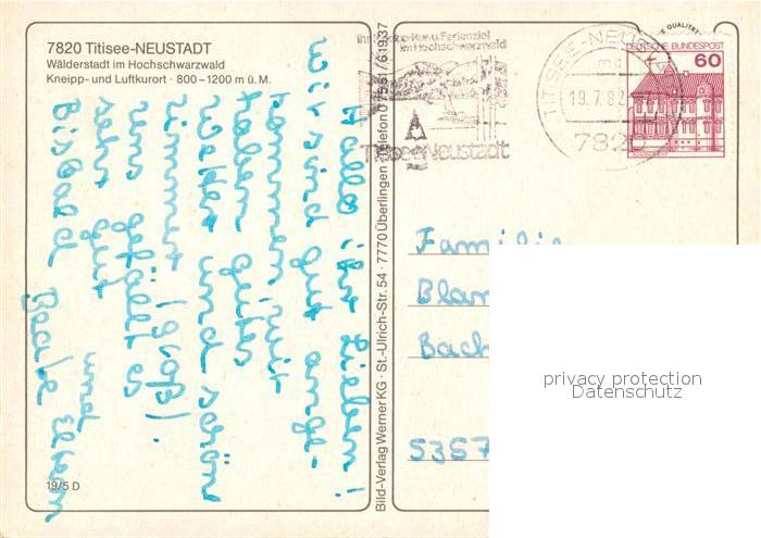 73120717 alte Postkarte Titisee-Neustadt Fliegeraufnahme postalisch gelaufen Erhaltung siehe scans [LiesaD40] KatCode: 11110008315113