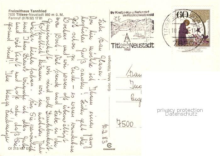73333090 alte Postkarte Titisee-Neustadt Freizeithaus Tannfried postalisch gelaufen Erhaltung siehe scans [LiesaD40] KatCode: 11110008315113