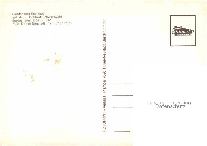 72855862 Titisee-Neustadt Fuerstenberg Rasthaus auf dem Hochfirst Schwarzwald postalisch nicht gelaufen Erhaltung siehe scans [FriedD77] KatCode: 11110008315113