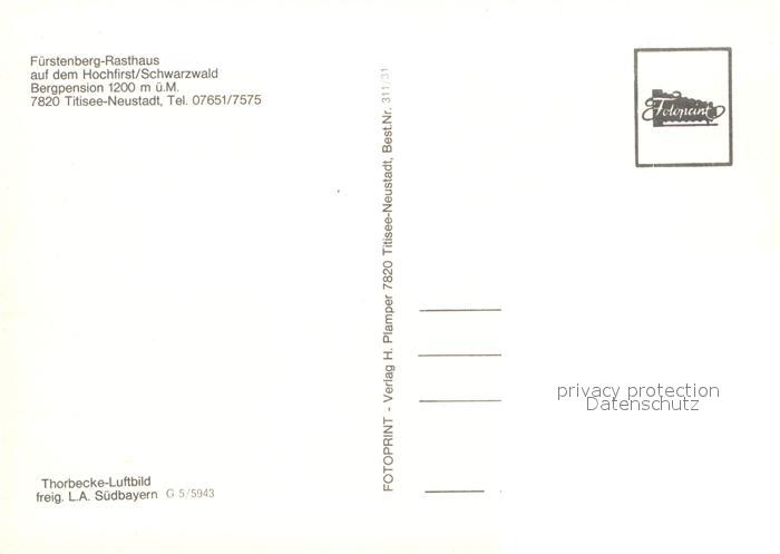 73010373 Titisee-Neustadt Fuerstenberg Rasthaus Bergpension Hochfirst mit Feldberg Fliegeraufnahme postalisch nicht gelaufen Erhaltung siehe scans [WerneD78] KatCode: 11110008315113