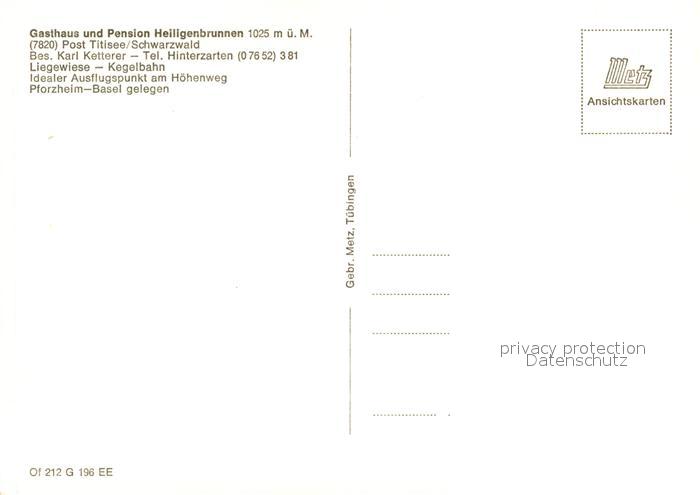 73080992 Titisee-Neustadt Gasthaus Heiligenbrunnen Feldberg postalisch nicht gelaufen Erhaltung siehe scans [LiesaD40] KatCode: 11110008315113