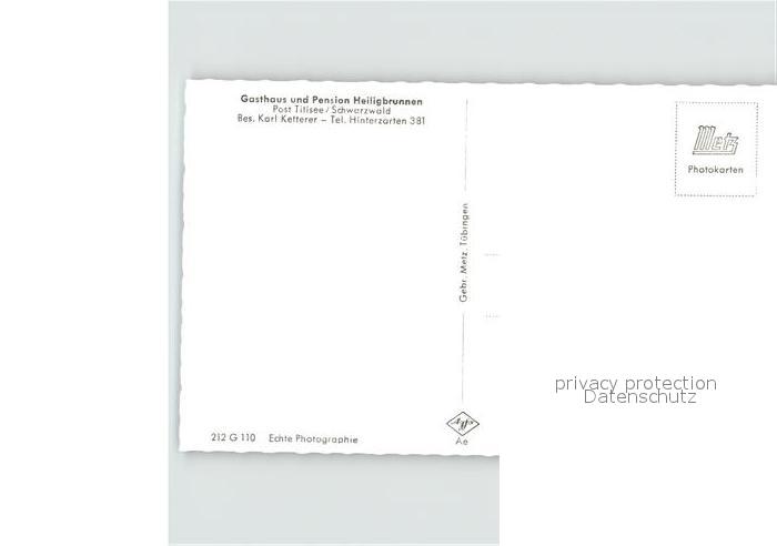 41763585 Titisee-Neustadt Gasthaus Pension Heiligbrunnen postalisch nicht gelaufen Erhaltung siehe scans KatCode: 11110008315113