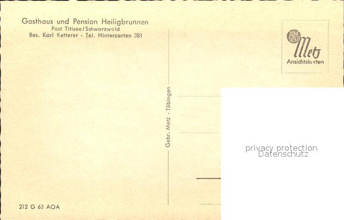 41759575 Titisee-Neustadt Gasthaus Pension Heiligbrunnen postalisch nicht gelaufen Erhaltung siehe scans KatCode: 11110008315113
