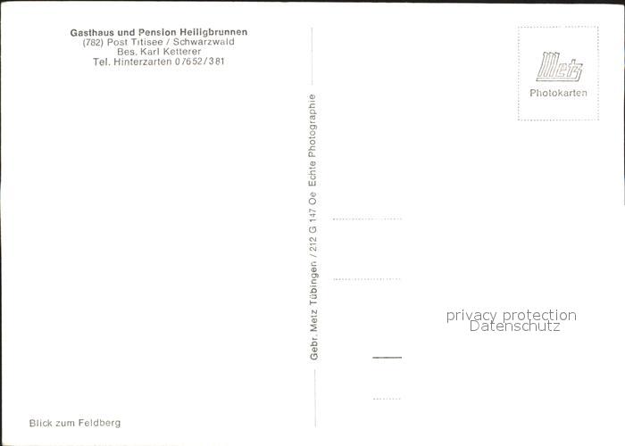 72201675 Titisee-Neustadt Gasthaus Pension Heiligbrunnen Kapelle postalisch nicht gelaufen Erhaltung siehe scans KatCode: 11110008315113