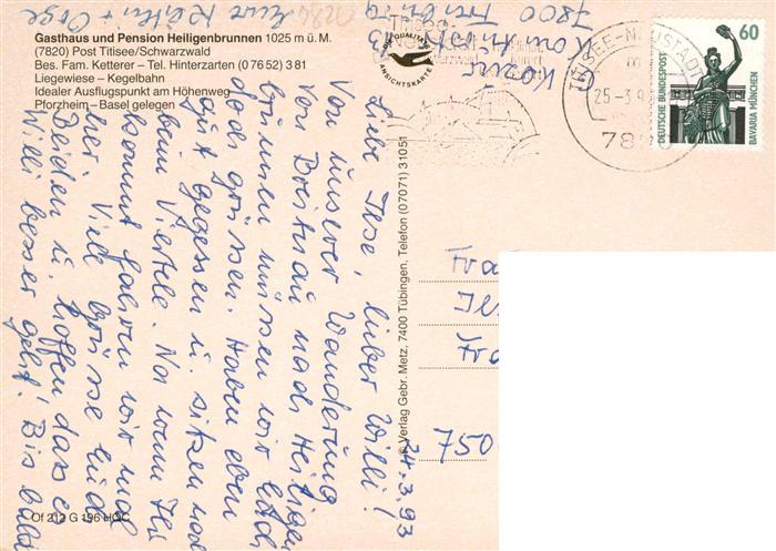 73928775 alte Postkarte Titisee-Neustadt Gasthaus Pension Heiligenbrunnen Panorama Gastraeume Kapelle postalisch gelaufen Erhaltung siehe scans [WerneD78] KatCode: 11110008315113