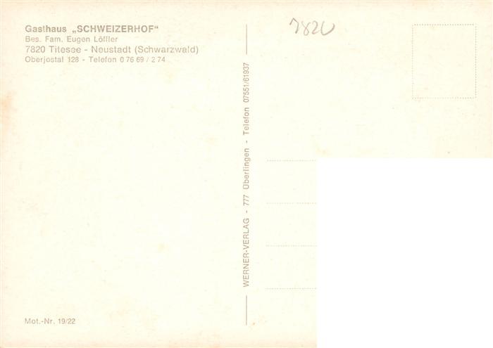 73928819 Titisee-Neustadt Gasthaus Schweizerhof Gaststube Panorama postalisch nicht gelaufen Erhaltung siehe scans [WerneD78] KatCode: 11110008315113