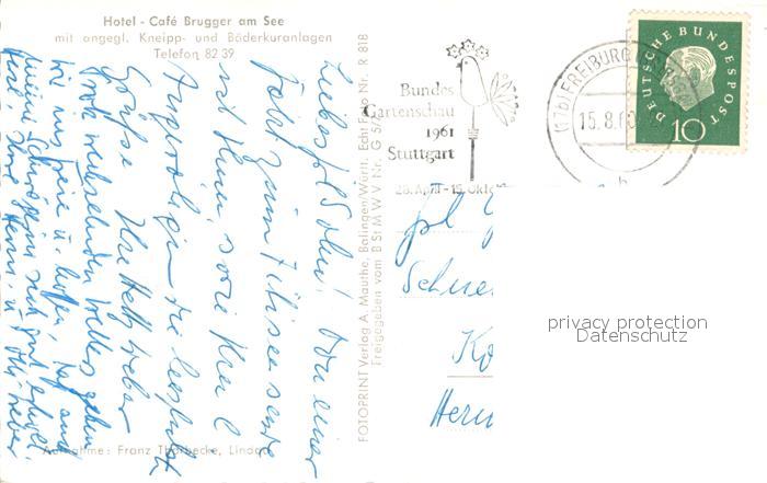 73730550 alte Postkarte Titisee-Neustadt Hotel-Cafe Brugger am See postalisch gelaufen Erhaltung siehe scans [LiesaD40] KatCode: 11110008315113