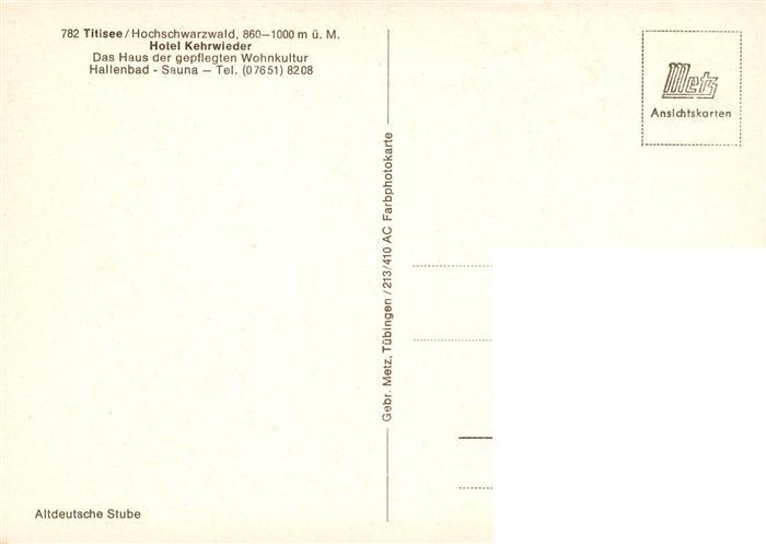 73928791 Titisee-Neustadt Hotel Kehrwieder Gaststube postalisch nicht gelaufen Erhaltung siehe scans [WerneD78] KatCode: 11110008315113