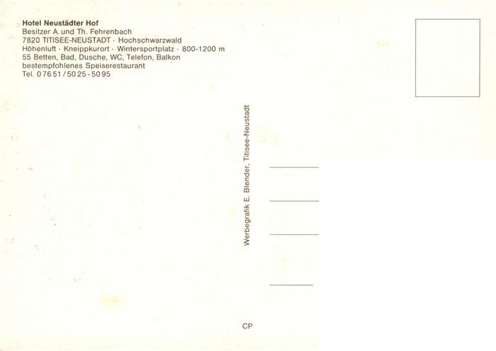 73928807 Titisee-Neustadt Hotel Neustaedter Hof postalisch nicht gelaufen Erhaltung siehe scans [WerneD78] KatCode: 11110008315113
