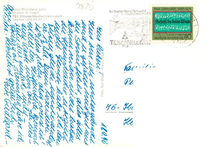 73929431 alte Postkarte Titisee-Neustadt Hotel Rheinland Garni postalisch gelaufen Erhaltung siehe scans [WerneD78] KatCode: 11110008315113