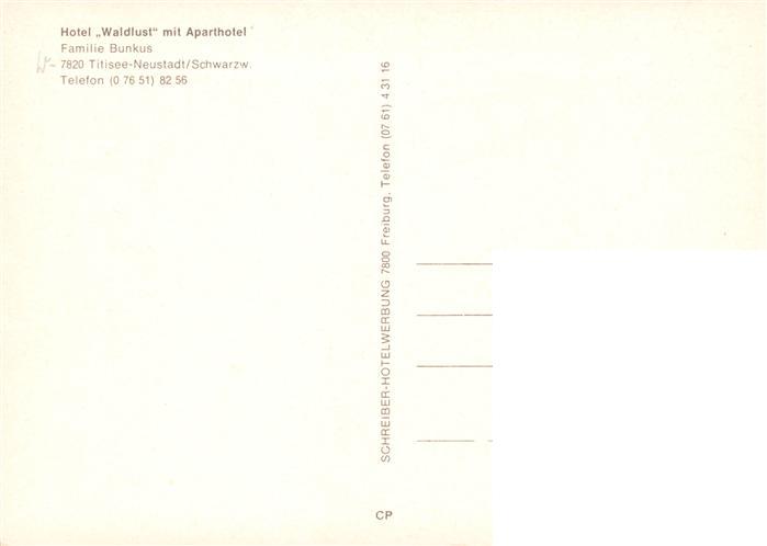 73892337 Titisee-Neustadt Hotel Waldlust mit Aparthotel postalisch nicht gelaufen Erhaltung siehe scans [WerneD78] KatCode: 11110008315113