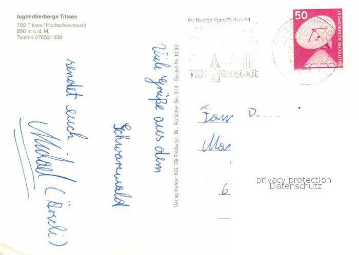 72771986 alte Postkarte Titisee-Neustadt Jugendherberge postalisch gelaufen Erhaltung siehe scans [LiesaD40] KatCode: 11110008315113